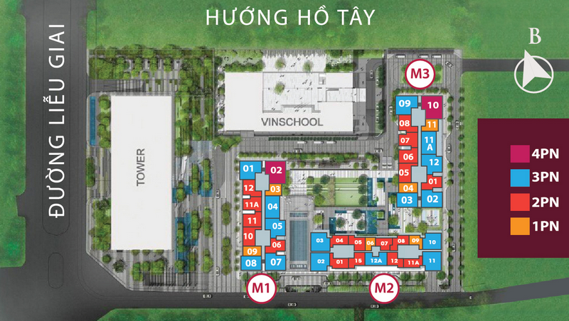 Xung quanh dự án là 4 hồ lớn: Hồ Tây, Hồ Giảng Võ, hồ Thủ Lệ, hồ Ngọc Khánh vừa mang tới phong thuỷ vượng khí, vừa mang lại tầm nhìn tuyệt đẹp cho các căn hộ Vinhomes Liễu Giai
