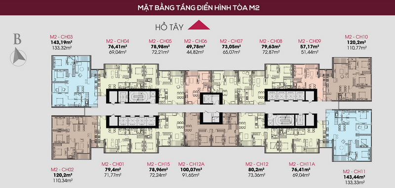 • Căn hộ 2 phòng ngủ: 73 → 83 m2